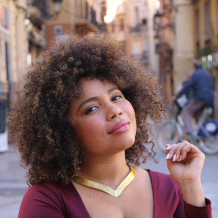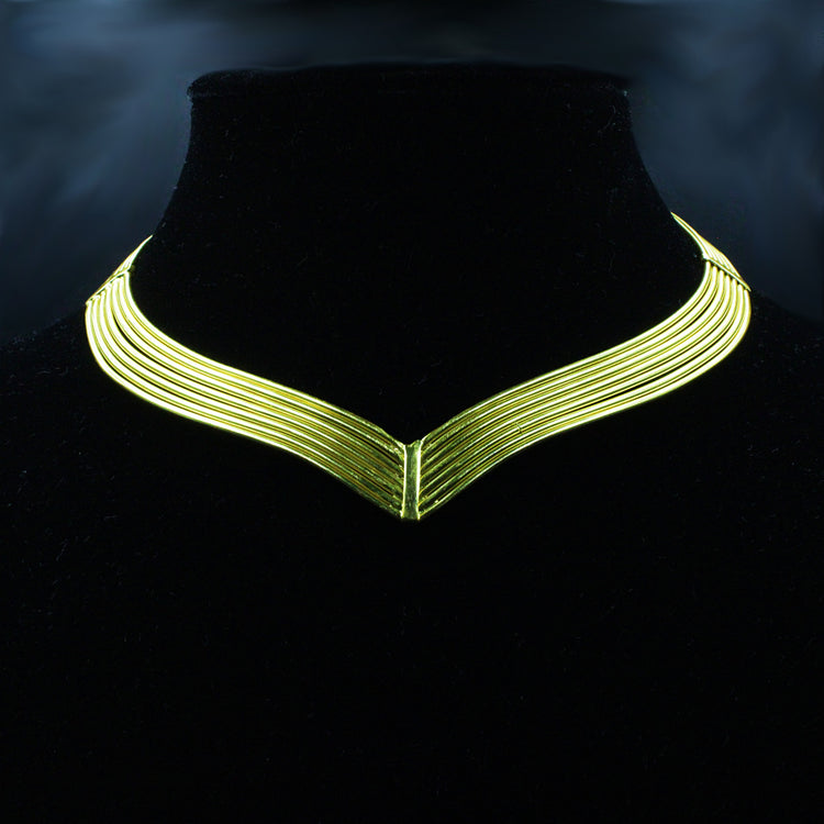 VALKYRIE choker , inspired by Norse mythology, the strength and greatness of a determined woman. This choker is a unique design that stands out for its elegance and originality. Made of brass, gold plated, nickel free and handmade. Ideal for garments with an open neckline or high neck garments that contrast with the choker. For summer and winter. It is a versatile piece when it comes to combining it with the clothes in your wardrobe and using it on different occasions, such as with jeans or an evening dress.